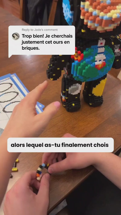 Acheté sur un coup de tête en cherchant une activité créative, et je suis tellement content de l’avoir fait ! Assembler les briques était étonnamment thérapeutique. La qualité est vraiment bonne, les pièces s’emboîtent bien. L’ours fini est solide et super stylé, le contraste entre les deux côtés est frappant. C’est une super pièce déco maintenant. Je recommande à fond !